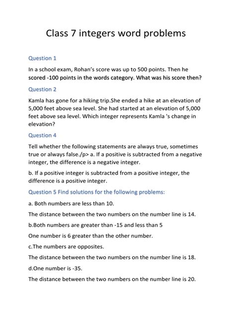0 Response to "Download integer word problems grade 7 with answers mobipocket"